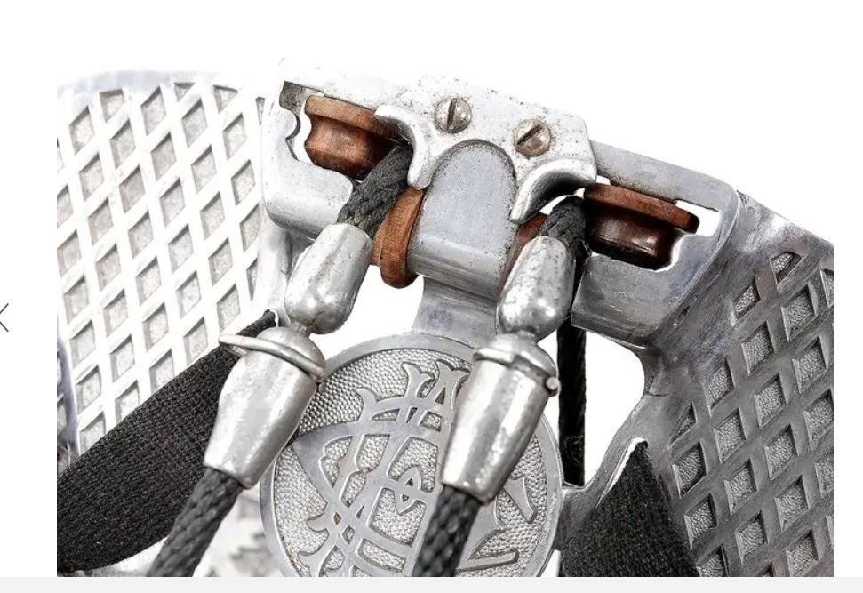 划船運動機“Warrow”。這是一件很棒的老式健身器材。它由實心白蠟木製成,配有滑動座椅、可調節腳踏板和“槳”把手。“槳”在繩索和滑輪上運行,鋼彈簧在拉動“槳”時提供阻力,座椅也裝有彈簧以提供向後張力。座椅標有“專利‘Warrow Reg D’No. 321362/29”。
